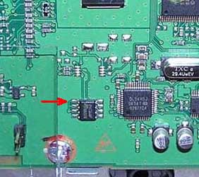 Для доступа к ней необходимо снять правую боковую крышку мфу и снять металлический экран, закрывающий главную плату. Сама микросхема 24С16 находится в нижней части главной платы, чуть левее от центра, в районе болта крепления платы к корпусу, см. фото. Первая ножка находится вверху слева, см. указано стрелкой.
